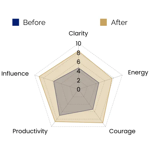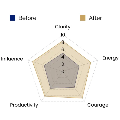 Maria’s transformation was remarkable. She realised that seeking clarity isn’t a weakness—it’s essential for effective leadership. This mindset shift empowered her to ask the right questions, communicate with greater confidence, and express herself authentically. She built stronger routines that supported her energy, reframed her productivity practices, and learned to lead her team with presence and influence.